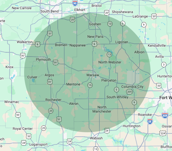 At Integrity Roofing, we’re proud to serve homeowners and businesses throughout Northern Indiana. Our home base is right here in Warsaw, in the heart of Kosciusko County, but our work extends far beyond — from the scenic communities of Winona Lake, Syracuse, North Webster, and Leesburg, to the beautiful lakes region surrounding Tippecanoe, Chapman, and Wawasee.